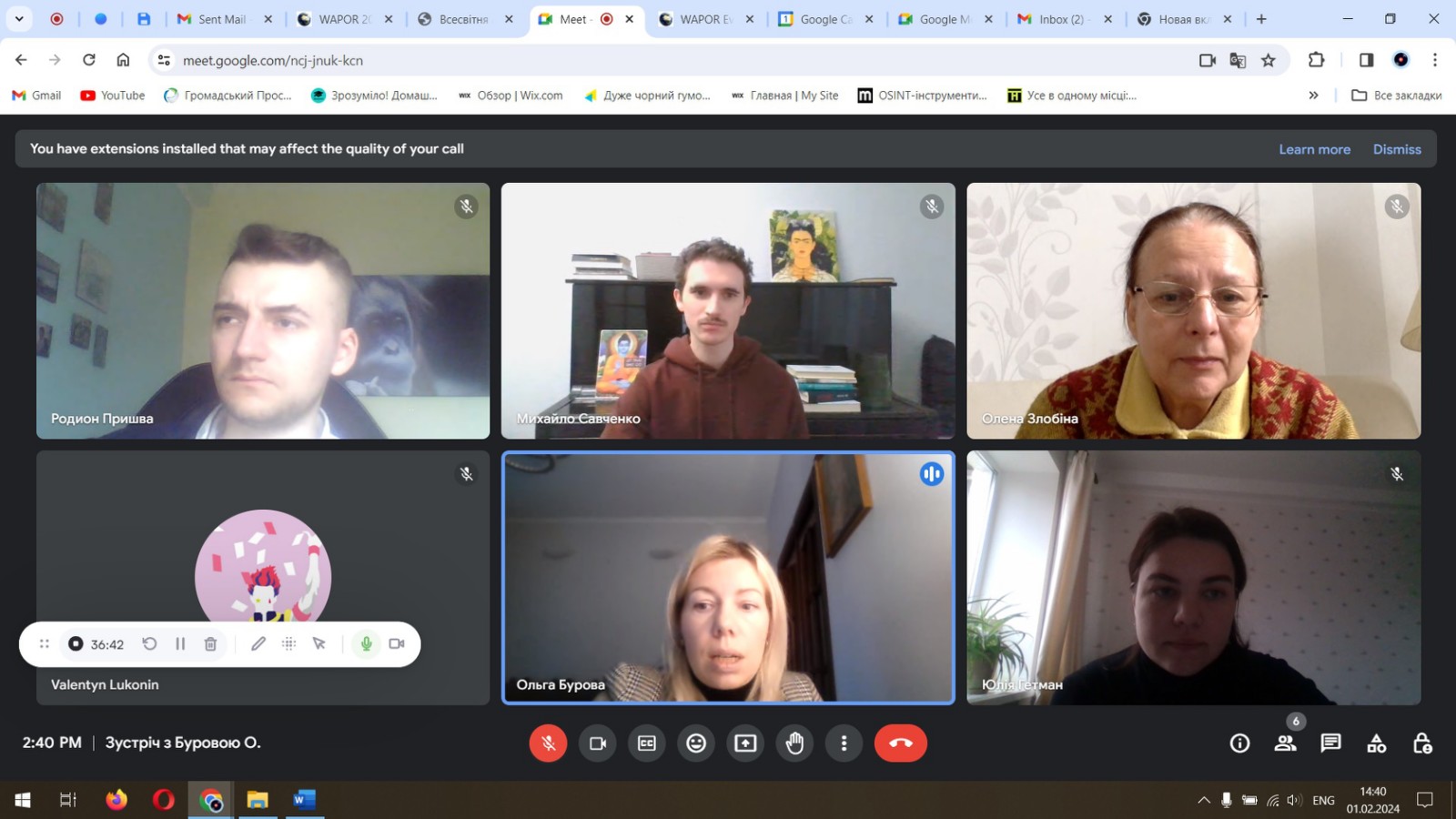 1 лютого 2024 року відбулася зустріч аспірантів з Ольгою Буровою, старшою науковою співробітницею відділу соціально-політичних процесів та національною представницею WAPOR від України.